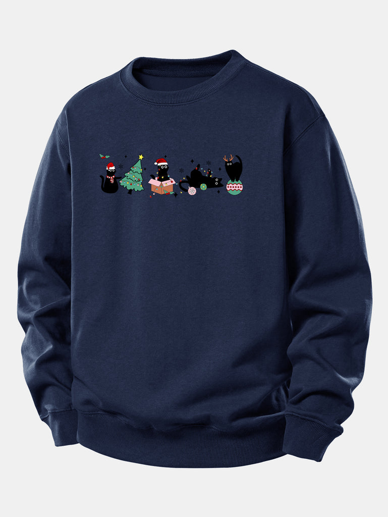 Christmas Black Cat Print Relax Fit Sweatshirt