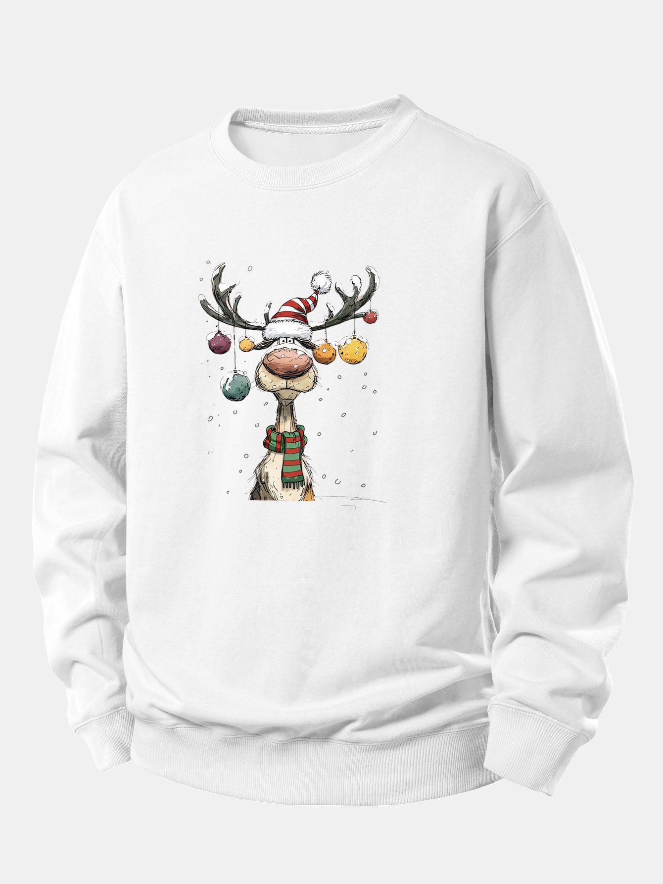Christmas Light Reindeer Print Relax Fit Sweatshirt